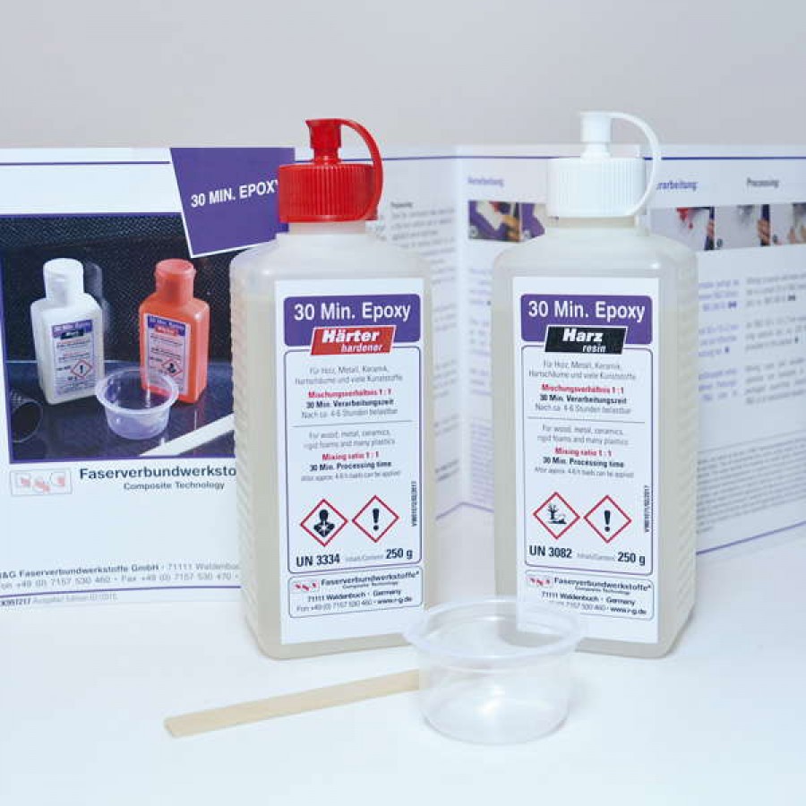 Kit adeziv cu doua componente (100 grame rasina + 100 grame intaritor) pe baza de rasina, folosit pentru lemn, metal, ceramica spume rigide si materiale plastice. Timpul de procesare este de 30 minute cu durata de intarire de 4 - 6 ore. Compusul se poate folosi si pentru umpluturi dar in general rezistenta la forfecare scade odata cu grosimea stratului aplicat. Componentele se amesteca in raport 1:1 cu ajutorului spatulei si a recipientului din kit. Proprietatile legaturii cresc odata cu cresterea temperaturii si a timpului de intarire. Datorita vascozitatii asemanatoare cu mierea, produsul poate fii folosit pentru umpluturi iar odata uscat se poate finisa prin slefuire si lustruire. Se poate comercializa in kituri de 200 si 500 gr.