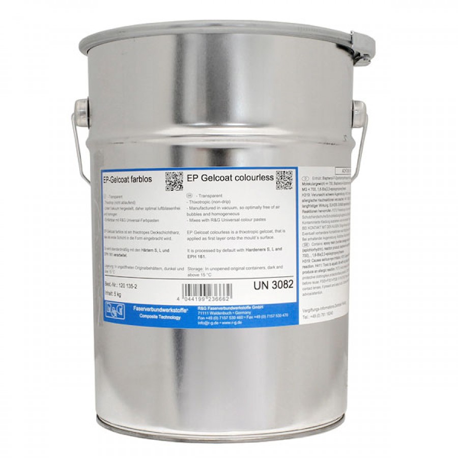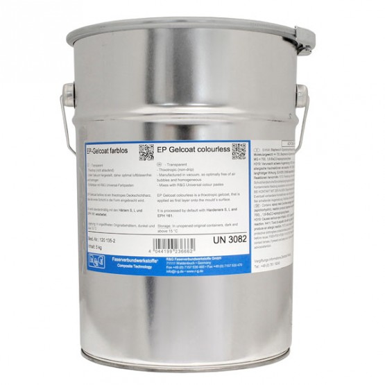 Gelul EP este incolor, fabricat in vid, omogen si fara bule de aer. Pentru radiatie UV trebuie protejat cu un strat suplimentar de vopsea transparenta sau opaca. Se poate combina cu orice colorant comercializat de R&G sau vopsi. Se aplica prin pensulare sau cu ajutorul rolelor sau spatulelor. Pentru un strat normal consumul este de cca 0,3 kg/mp. Se foloseste in combinatie cu diversi intaritori (cu timpi de procesare si intarire diferiti). Se poate stoca pentru cca 2-3 ani in recipientul original deschis, in locuri intunecate la o temepratura de minim 15 grade Celsius.