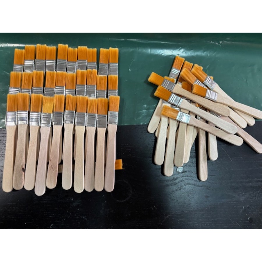 Pensulele pe care le propunem se apropie de acest ideal. Sunt facute din material sintetic pe care rasina aluneca usor  - suprafata pensulata fiind uniforma si fara ca pensula sa se incarce cu rasina. Perii pensulei sunt moi dar stabili si nu se desprind  astfel incat sa ramana pe suprafta de lucru iar dimensiunile , 13 x 1,5 cm permit manevrarea usoara si eficienta. Un avantaj major este si pretul setului de pensule comercializat care reduce semnificativ costul produsului final .